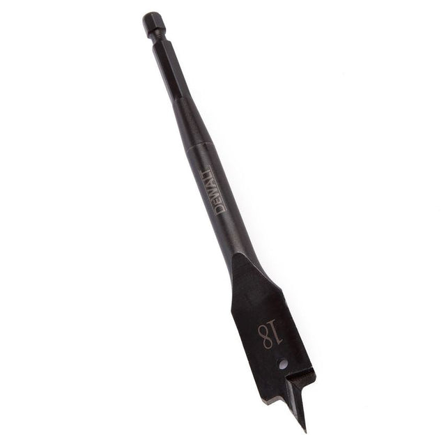 Dewalt DT4767 Extreme Impact Flatwood Drill Bit 18mm x 152mm The Dewalt DT4767 flat wood drill bit has an 18mm cutting diameter and is 152mm in length. These drill bits are designed for drilling wood materials such as chipboard, softwood and hardwood. Other features include a robust steel shank for increased durability and chamfered outer cutting spurs for clean, precise drilling. Features: Ideal for door locks, electrical and plumbing work Specification: Cutting Diameter: 18mm Length: 152mm Pack Quantity: 1