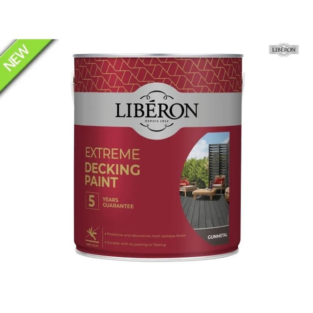 Liberon Extreme Decking Paint is ideal for exterior wooden decking: soft, hard, exotic, smooth or grooved. Provides a protective and decorative matt opaque finish. This durable finish won't peel or flake. If needed it can be easily cleaned up with water. 5 year guarantee.
