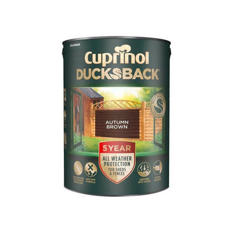 Low stock (10 units)£21.99Unit price /UnavailableDucksback 5 Year Waterproof for Sheds & Fences Autumn Brown 5 litre CUPDBAB5L