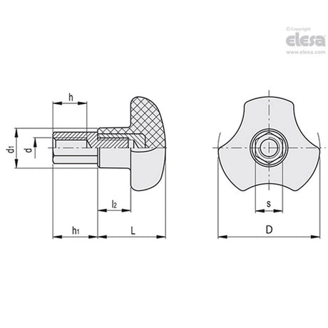 Low stock (10 units)£18.69Unit price /UnavailableELK Knobs with rear lobes Technopolymer Zinc-plated steel threaded stud ELK.56 p-M10x40-C2
