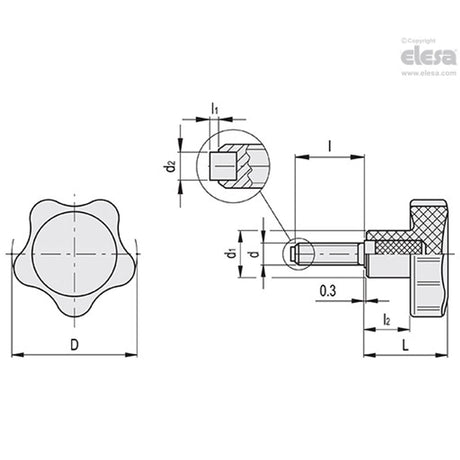 Low stock (10 units)£7.69Unit price /UnavailableELK Knobs with rear lobes Technopolymer Zinc-plated steel threaded stud ELK.56 p-M8x40-C2