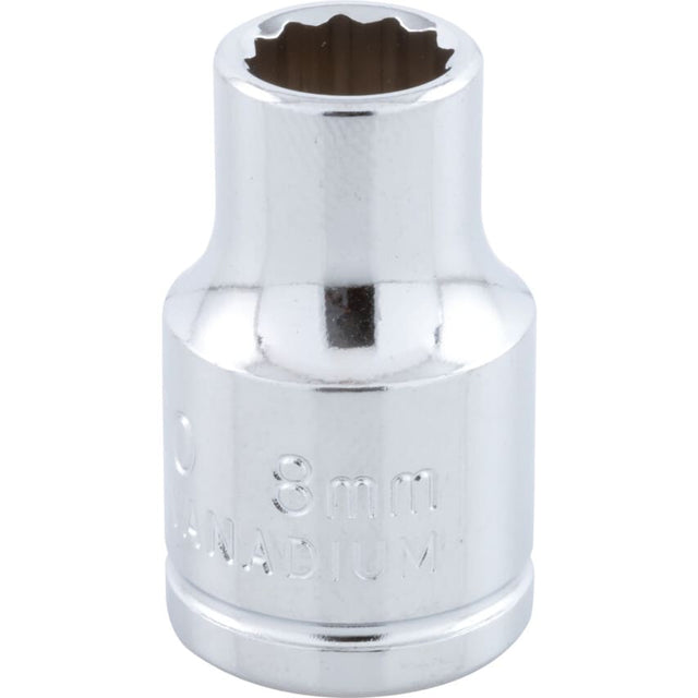 These 1/4in. square drive sockets are available in a range of metric sizes. Each piee is manufactured from high grade chrome vanadium which is fully chromed, aluminium free and with a high polish mirror finish. Features and Benefits Manufactured from chrome vanadium steel for optimum durability Fully chrome plated for bolstered resistance to corrosion Available in a range of metric sizes to suit your needs High polish mirror finish to rebuff dirt and make for an easier tool clean Aluminium free construction makes the product suited for non-sparking applications Side-Drive bi-hexagon sockets are designed to reduce stress/damage to fasteners Typical Applications Construction Plumbing Engineering Automotive Standards ANSI B107.5M:2012