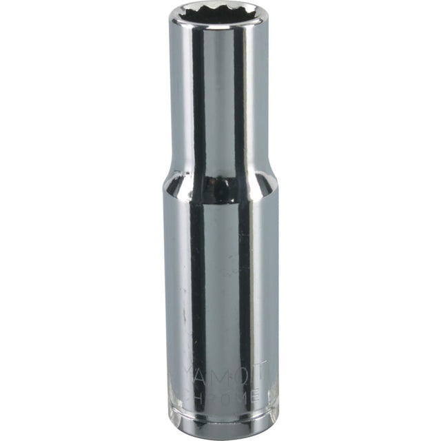 Available in a range of metric sizes, these bi-hexagon 1/4in. square drive deep impact sockets are ideal for removing deep recessed sockets. Manufactured from high grade chrome vanadium steel which is fully chromed, aluminium free and with a high polish mirror finish. Side-Drive bi-hexagon sockets are designed to reduce stress and damage to fasteners and each product possesses a chamfered leading edge. Features and benefits Made from chrome vanadium steel for maximum durability Fully chrome plated with a mirror finish for an easy component clean Aluminium-free making them useful for non-sparking applications Side-Drive bi-hexagon sockets are designed to reduce stress/damage to fasteners Unique 'Double-Knurl' design gives the sockets high grip Chamfered leading edge ensures easy fastener location Available in a range of metric sizes to suit your exact needs Typical Applications Engineering Construction Automotive