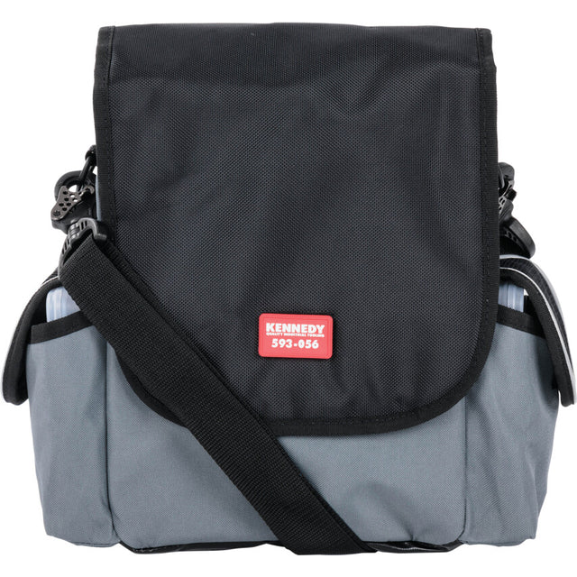Manufactured from heavy-duty tear resistant material with reinforced stitched edging. Hook-n-loop fastening flap with soft touch carry handle and double webbed shoulder strap fixed with metal release clasps. Supplied with two small organiser cases which are stored in two outer pockets, two removable tool boards (one hook-n-loop fastened) are kept inside which have a unique tool storage securing system built-in.