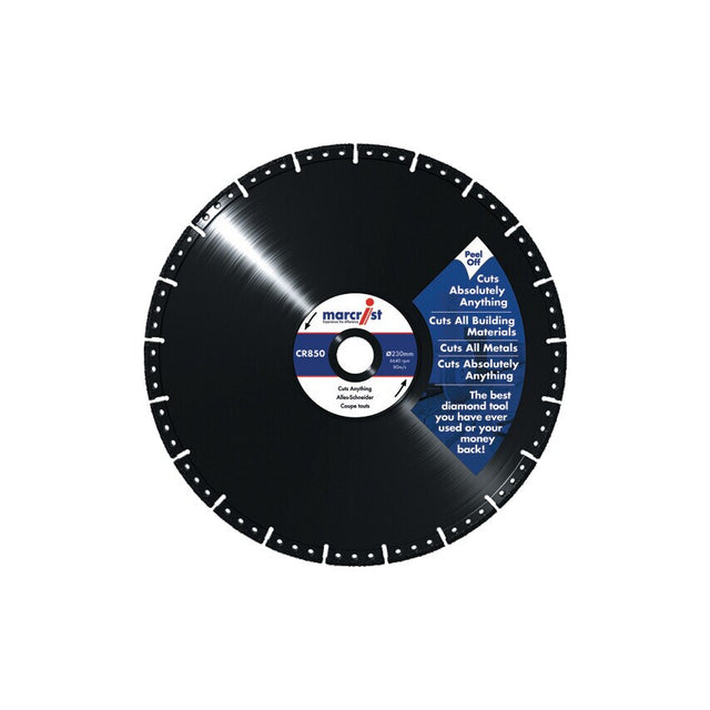 Cuts absolutely everything. Cuts all metals. Cuts all building materials. Titanium coated diamonds provide self cooling and self sharpening cutting edge.