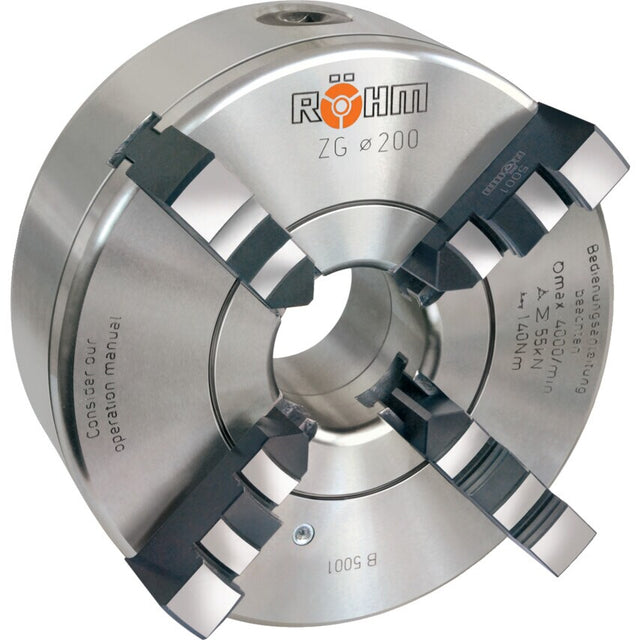 In the area of manual lathe chucks the Orange Line offers the geared scroll chuck ZG with cast iron body and one-piece jaws as alternative to the proven steel version ZS. Suitable adaptor flanges are also available.