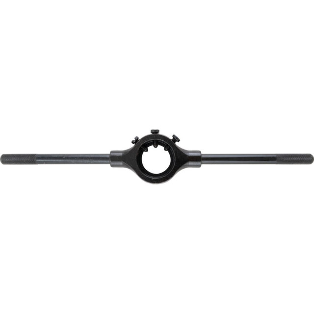 Kennedy Die Stocks are all steel drop forged with a solid construction for long life with knurled handles for extra grip. Designed to hold a range of different sizes of round split-adjustable dies, the three screw design easily locks die into position and maintains alignment for accurate threading resulting in clean, straight threads.