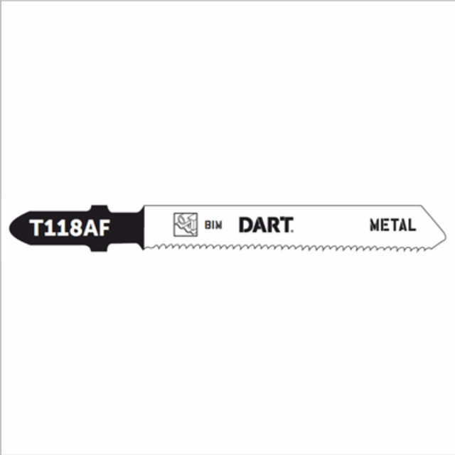 Precision made jigsaw blade. Suitable for cutting: Mild steel and non-ferrous metal to 4mm, perspex to 20mm, aluminium to 10mm, stainless steel to 2mm, curve cuts, bi-metal for long life. Equivalent to Bosch T118AF. 21 TPI, 50mm working length.