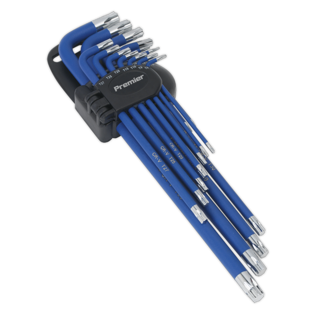 Manufactured from heat treated and hardened Chrome Vanadium steel with a fully polished finish. Keys range in length from 70mm to 225mm and in size from T6 to T50. Anti-slip coating for comfort and control. Supplied in easy-access case with hanging tag for safe storage and quick key selection.