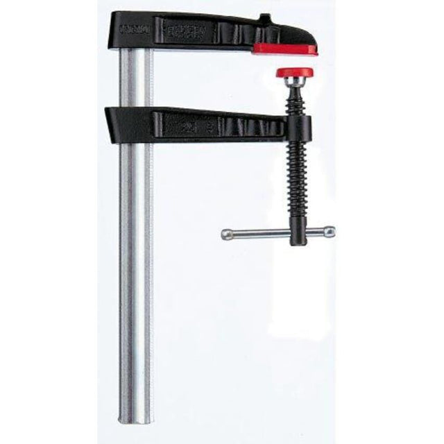 Clamping force up to 6,000 N Tommy bar with rounded ends for simple transfer of force when clamping Pressure plates can be replaced by hand no tools required With protective caps on the clamping surfaces Stable profiled rail with serration BESSEY anti-slip system Integrated BESSEY anti-slip system, Maximum safety is available with the integrated BESSEY anti-slip system, when clamping with a throat depth of 80 mm or more. A set screw that is molded into the sliding arm interlocks with the serration on the rail. This effectively prevents the clamp from dislodging or slipping away. Reinforced malleable iron clamps, Both the upper and lower sections are produced from high-quality malleable iron and reinforced by shafts. The powder coating protects against corrosion and the characteristic shaft profile works as a reliable reinforcement against torsion forces. High-quality profiled rail, The BESSEY profiled rail from our own drawing plant has been especially optimised for clamps. The serration on six faces additionally prevents the clamp from slipping. Pressure plate, For enhanced serviceability the pressure plate can be changed with no need for tools. It can be replaced very easily and quickly.