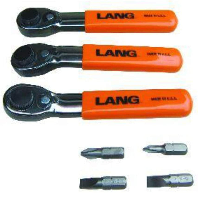 5 ratchet increment function for increased accessibility - Contains: (1) 15 offset wrench, (1) 15 reverse offset wrench, (1) flat wrench, and (4) bits - Bit Sizes: #1 and #2 Phillips; 1/4" and 9/32" Slotted - Use with any 1/4" drive bit as a ratcheting screwdriver or a 1/4" adapter enabling use of a 1/4" socket to access restricted applications - Readily accessible reversing lever for one-hand use - Raised knurl design allows fingertip control for loose screws