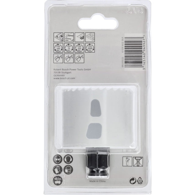 Endurance holesaw for Heavy Duty applications with sintered carbide teeth providing extreme durability during the most demanding use, 20x longer life compared with BiM (bimetal) tooth cutters.Increased cutting depth allows material to be cut up to 60mm thickness. Heavy duty design cuts into materials, where BiM saw blades just aren't enough. Sintered carbide teeth technology ensures higher temperature resistance during drilling into hard and abrasive materials such as hardened screws, nails, stainless steel, brick and similar.Holesaws can be easily replaced in seconds, thanks to the Power Change Plus adaptor (not supplied), one adaptor for all 20-127mm diameter holesaws.