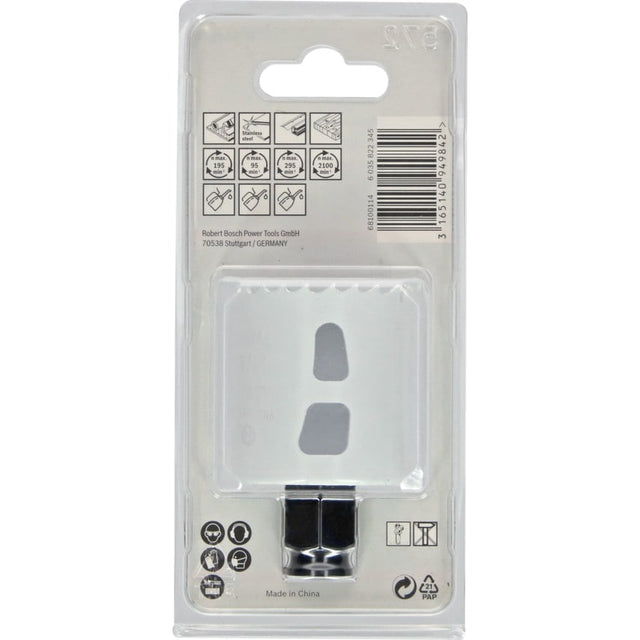Endurance holesaw for Heavy Duty applications with sintered carbide teeth providing extreme durability during the most demanding use, 20x longer life compared with BiM (bimetal) tooth cutters.Increased cutting depth allows material to be cut up to 60mm thickness. Heavy duty design cuts into materials, where BiM saw blades just aren't enough. Sintered carbide teeth technology ensures higher temperature resistance during drilling into hard and abrasive materials such as hardened screws, nails, stainless steel, brick and similar.Holesaws can be easily replaced in seconds, thanks to the Power Change Plus adaptor (not supplied), one adaptor for all 20-127mm diameter holesaws.