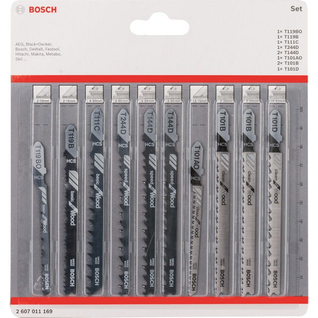 Mixed 10 piece jigsaw blade sets that are suitable for various materials.