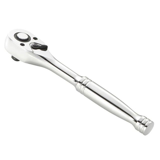 Britool 3/8in Drive ratchet with steel handle. Features a 72-tooth mechanism, providing 5 increments. For security, the ratchet has a socket safety lock. It allows lever reversing, with the rotation direction displayed. High Chrome finish. Conforms to ISO 3315 - DIN 3122.