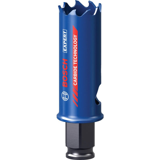 This range of hole saws cut accurately and cleanly through metal, using carbide teeth to maintain excellent stability during use. Designed with Bosch Carbide Technology, the teeth of the saw are made from the hardest metal, laser welded and ground six times for optimum shape and performance. The saw is very versatile, being ideal for use with wood, metal, stainless steel, brick, soft tiles and reinforced plastics.Features and Benefits Lasts up to 50 times longer than a Bi Metal hole saw Bosch Carbide Technology offers excellent durability Highly versatile Robust and accurateTypical Applications Cuts neat holes up to 60 mm in depth Tubing for wires and water pipes Holes for sockets, light switches and junction boxes Suitable for any applicable task