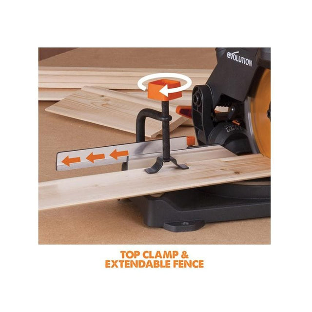 The Evolution R210CMS Multi-Purpose Compound Mitre Saw is safer, faster and more economical than abrasive metal cutting saws. When cutting mild steel the saw produces no heat, no burrs and virtually no sparks. The cuts are clean and cool to touch, creating an instant workable finish. Utilising patented Evolution multipurpose cutting technology. The R210CMS compound mitre saw is optimised to cut mild steel, non-ferrous metals, wood and wood with embedded nails and plastic with a single blade. No blade changes for hassle free, fast and easy work. Supplied with: 1 x TCT Multipurpose Blade 210 x 25.4mm x 20 Tooth Specification Input Power: 1200WNo Load Speed: 3750/min.Cross Cut (0x 0) : 125 x 55mmMitre Cut (45x 0) : 85 x 55mmBevel Cut (0x 45) : 125 x 35mmCompound Cut (45x 45) : 85 x 35mmSound Pressure Level LPA: 97.14 dB(A).Weight: 5.8kg