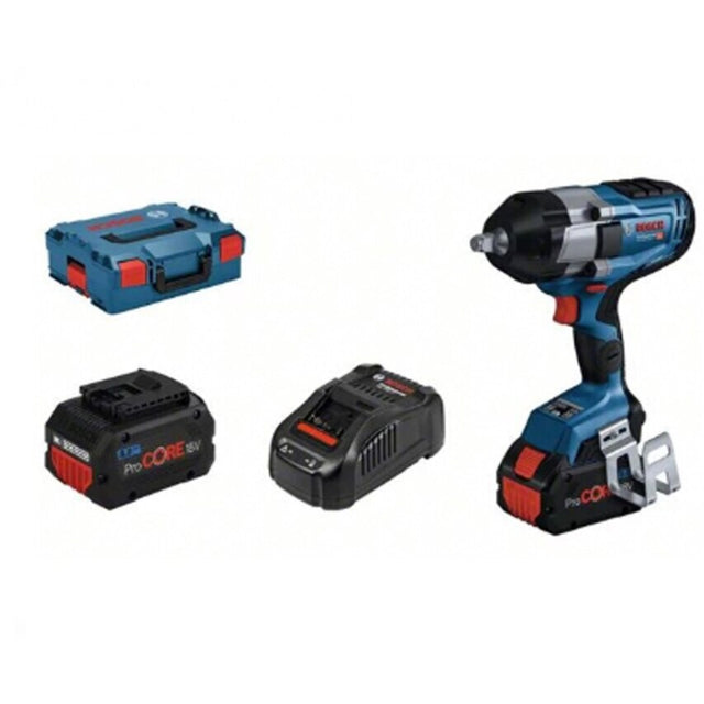 The Bosch GDS 18V Professional 1/2" impact wrench, powered by BITURBO Brushless technology, offers cordless freedom combined with exceptional power. Its high-performing brushless motor, optimized for ProCORE18V batteries, ensures outstanding performance. With a maximum tightening torque of 1,000/1050 Nm and a breakaway torque of up to 1,600 Nm, the new impact mechanism is tailored for heavy-duty tasks. The wrench provides three settings for precise control over speed/torque, enhancing versatility. It is compatible with all Bosch Professional 18V batteries and chargers, including the ProCORE18V system for maximum power ( 5.5 Ah), and it is also compatible with AMPShare, the multi-brand battery alliance.