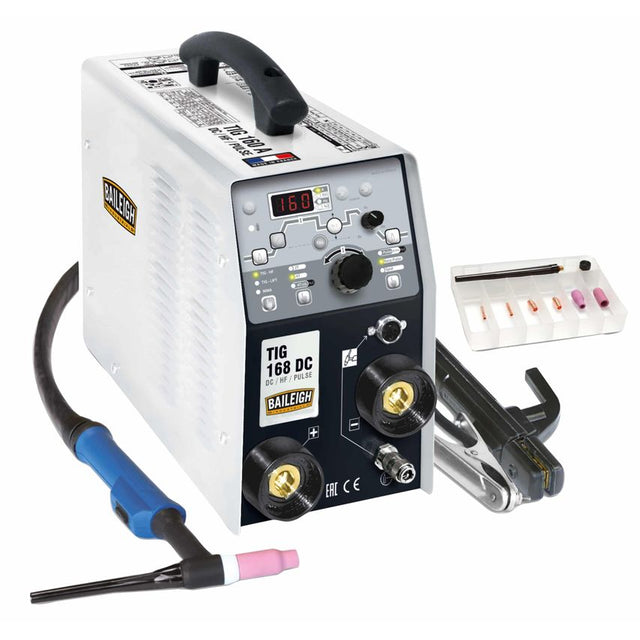 Standard Tig Mode Constant DC current. Easy Pulse preset pulse frequency dependent on the current. Pulsed Tig Mode:- Ideal for thin gauge materials. Trigger modes - 2T and 4T (hold or latched trigger ). Pre Gas gas flow before you begin to weld (in seconds). Up slope control the increasing current from the start of the weld. Pulse Frequency set the frequency of the pulses per second.Down Slope control of the reducing current at the end of the weld. Post gas flow of gas at the end of the weld to reduce cracking. Memory function Store 5 preset jobs within the machine. MMA mode stick electrode welding. SR17 4 metre Tig torch. 2 metre Electrode holder. 2 metre earth clamp. Consumables starter kit