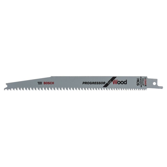 Bosch S2345X (2608654404) Progressor Sabre Saw Blade, Universal Shank - For Wood (5 Pack) Bosch Sabre Saw Blades. Progressor for Wood. Universal use including plywood and plastic gives an effortless fine cut. Features: HCS Pack of 5 Clean cut Side set, ground Effortless, fine cut For construction wood Specification: Material: HCS Qty: Pack of 5 Thickness [mm]: 1.25 Total length [mm]: 200.0 Tooth design: side set, ground Tooth spacing [mm] / TPI: 2.5-4.3 / 6-10 Areas of application: Construction wood