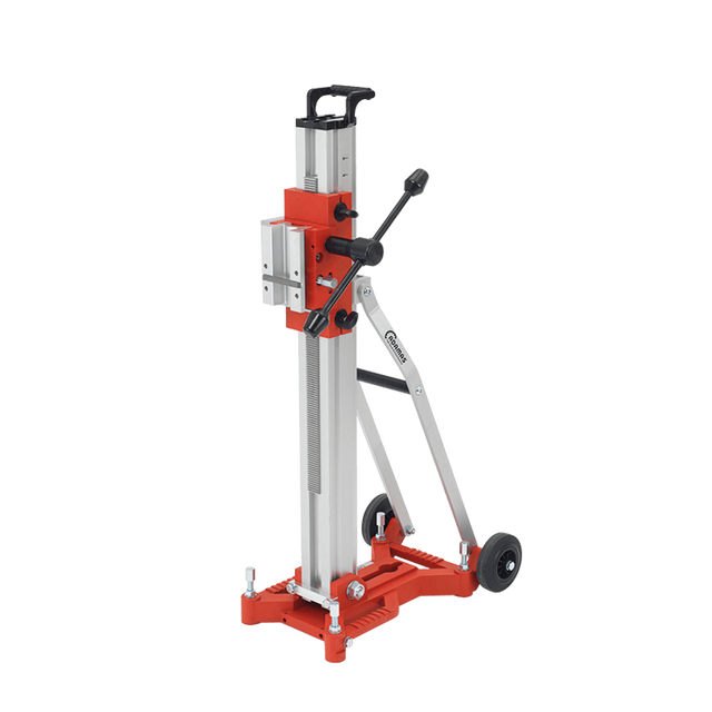 DESCRIPTION For drilling holes up to 200 mm60 mm collarMax. cutting depth 450 mm with drill depth indicatorWeight 10.9 kgFor handheld drill motors onlyCan be variably tilted from 0 to 45 with drill angle indication on base plateLightweight and durable aluminium designIntegral vacuum base including vacuum seals and blockCan also be used with fixing anchorsDrill angle indication on base plateAdjustable sliding blocksOperating handle fits all adjusting and tensioning boltsDouble water level in sliding houseDouble stabilisation bar & wear resistant side blocksOn board tool station includedBase plate size 230 x 384 mmHeight: 850 mm