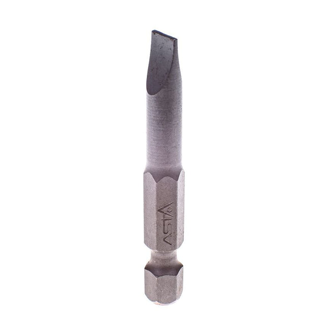 6mm slotted screwdriver bit, 50mm long for use with 1/4" hex drive bit holders and adaptors. Made of hardened and tempered impact grade S2 steel with a shot blasted finish. Supplied as individual bit.