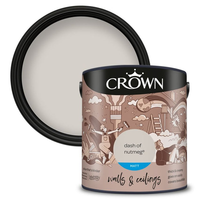 Crown Walls & Ceilings Matt 2.5L Dash Of Nutmeg Durable, non reflective finish Unique Breatheasy formulation - 99% Solvent free Touch dry in 2 hours Due to geographical locations we are unable to deliver to: Isle of Wight, Isle of Man and Ireland.
