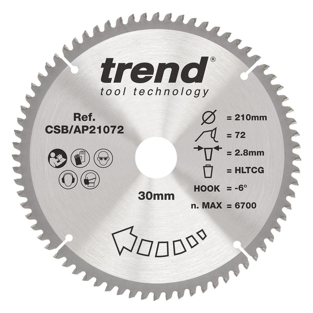 Trend Aluminium/Plastic Circular Saw Blade 210mm x 30mm x 72T