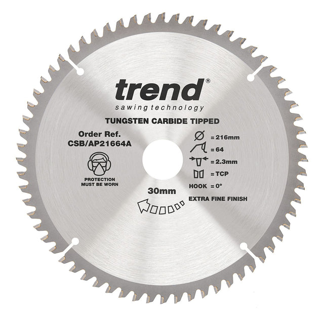 Trend Aluminium/Plastic Circular Saw Blade 216mm x 30mm x 64T