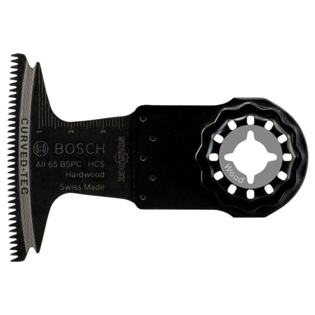 The Bosch Starlock AII 65 BSPC Blade delivers wide and clean cuts in hardwood. Its flat design reduces wobbling to enable a controlled cut due to direct power transfer. The blades rounded cutting edge (Curved-Tec) makes precise and smooth plunge cuts. The Starlock mount provides optimum power transfer and convenient blade change within 3 seconds. The mounting system produces the highest power transfer due to a 3-dimensional tight-fitting connection between machine and accessory.Specifications:Width: 65mmImmersion Depth: 40mm