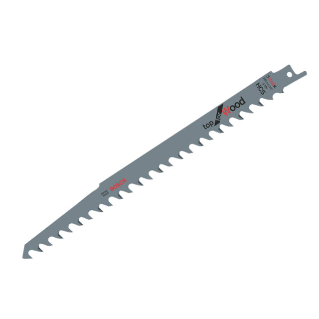 The Bosch S 1542 K Top for Wood Reciprocating Saw Blade delivers powerful and fast cuts in wood. The large tooth pitch (8.5mm) and large gullets remove material quickly, enabling rapid cutting. Sharp-ground, side-set teeth cut efficiently for powerful work, extra-thick gauge material provides ultimate stability. Fits all S-shank reciprocating saws.Specifications:Overall Length: 240mmMax. Cutting Capacity: 190mmTPI: 3